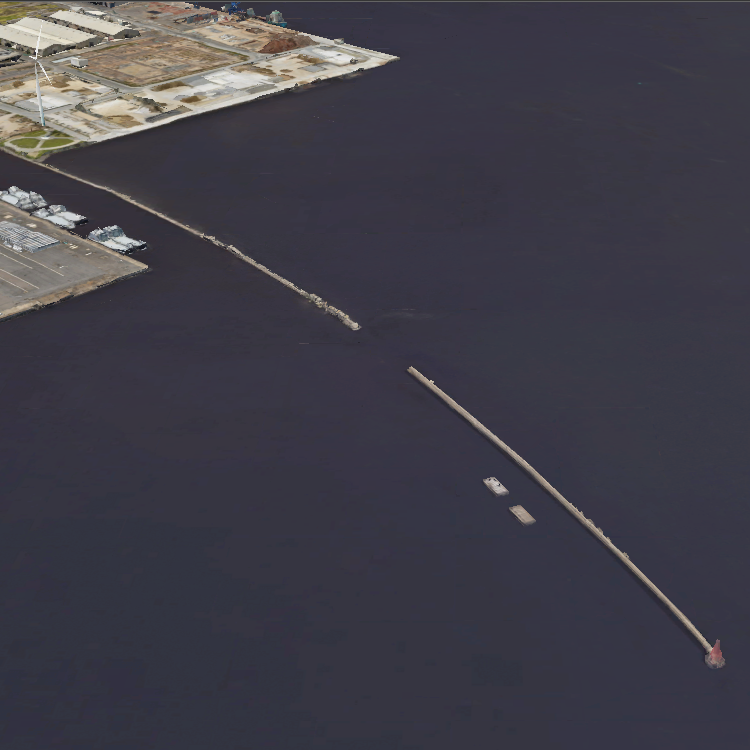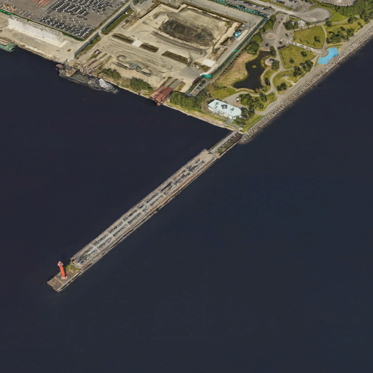 赤レンガパークの釣り場は、公園東側にある約330メートルほどの護岸です。 |
